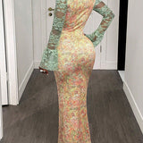 - Cutout Bust, Long Sleeves, Maxi Length