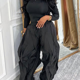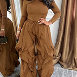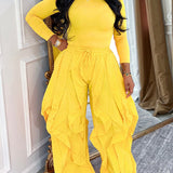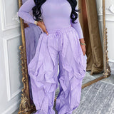 - Crew Neck, Long Sleeves, Elastic Waist, Wide Leg