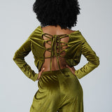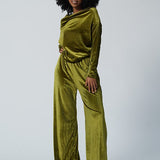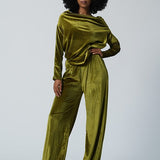 Crowl Neck Top & Wide Leg Pants Velvet Set -- sold out