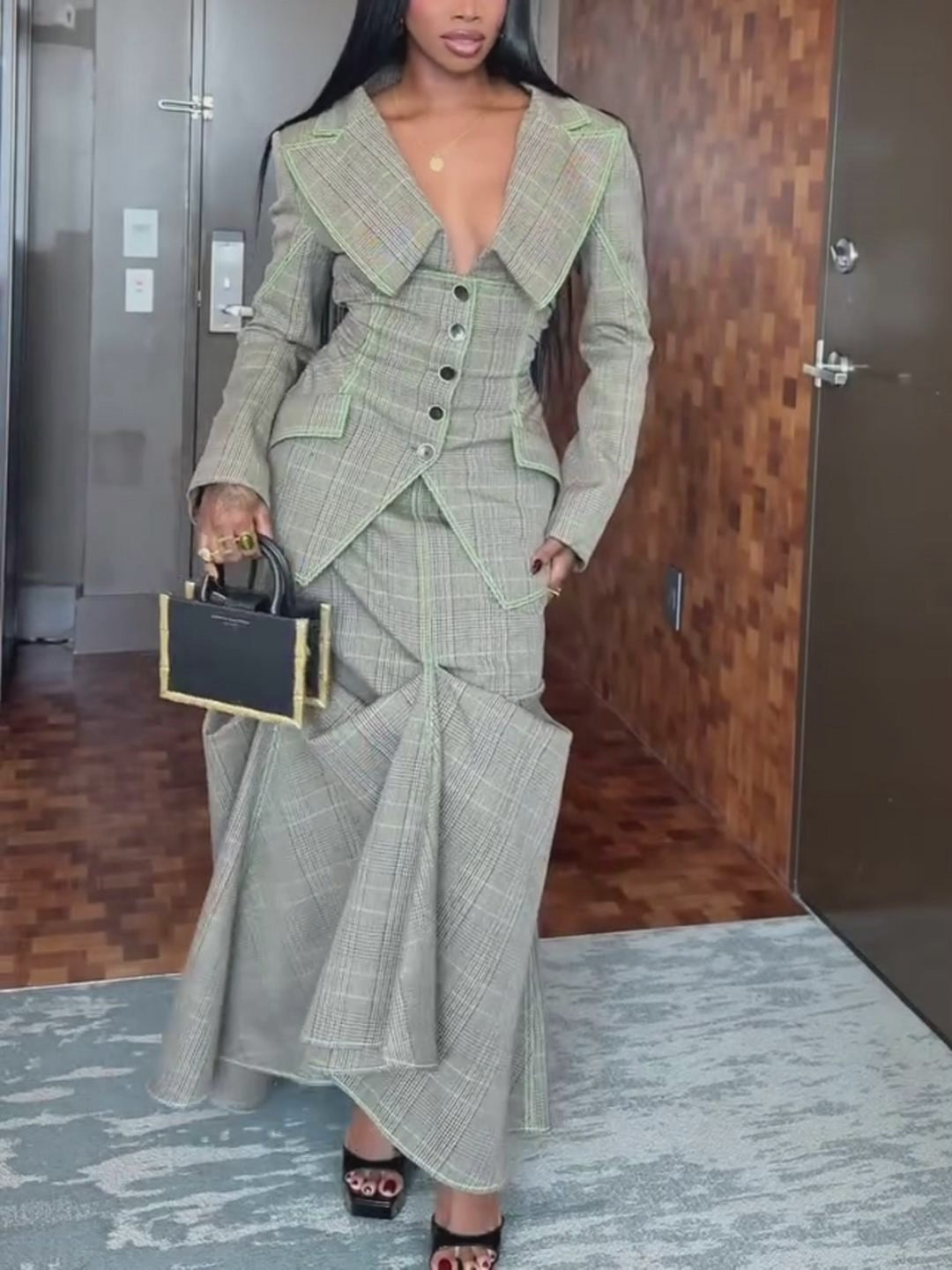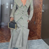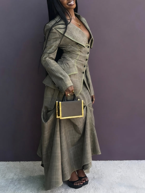Plaid Blazer & Skirt Set
