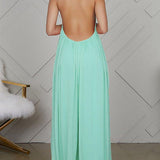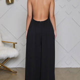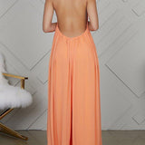 - Halter Neckline, Sleeveless, Backless, Wide Legs, Full Length