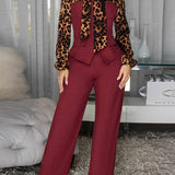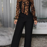 Leopard Tied-Neck Top & Pants Set