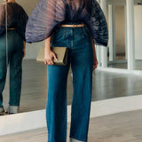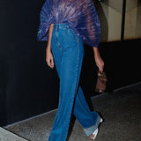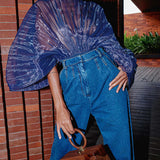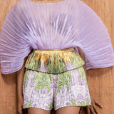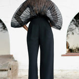 Sheer-Combo Batwing-Sleeve Bodysuit