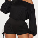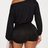 Boat-Neck Drawstring Romper