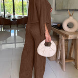 Solid Boat-Neck Top & Pants Set