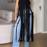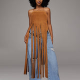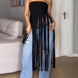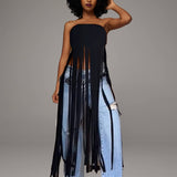 Fringe Strapless Tunic Top