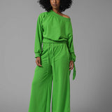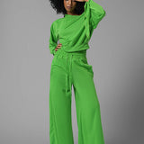 One Tied Sleeve Sweatshirt & Wide Leg Pants Set