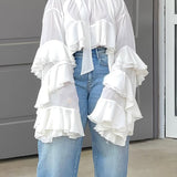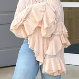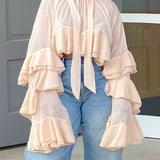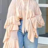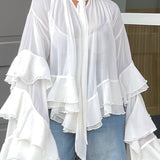 - Self-Tied Neck, Ruffle Sleeves&Hem