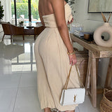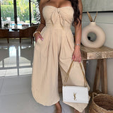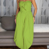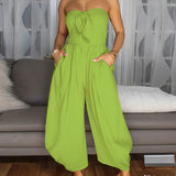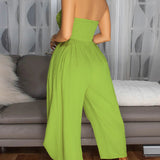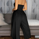 Solid Strapless Tied Wide-Leg Jumpsuit
