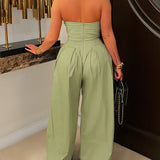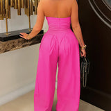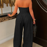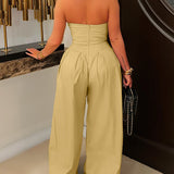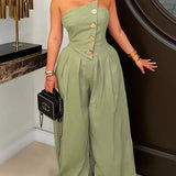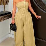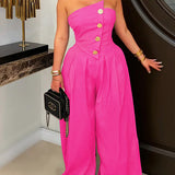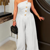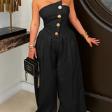 Strapless Button Wide-Leg Jumpsuit
