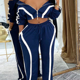 - Spread Collar, Zip Front, Drawstring, Wide Leg