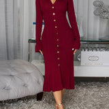 V-Neck Button-Front Dress