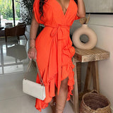 V-Neck Tied Ruffle Dress