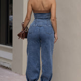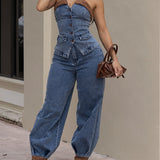 Contrast Denim Tube Top & Pants Set
