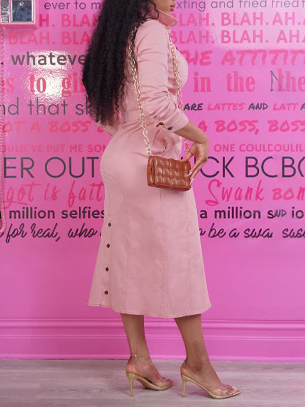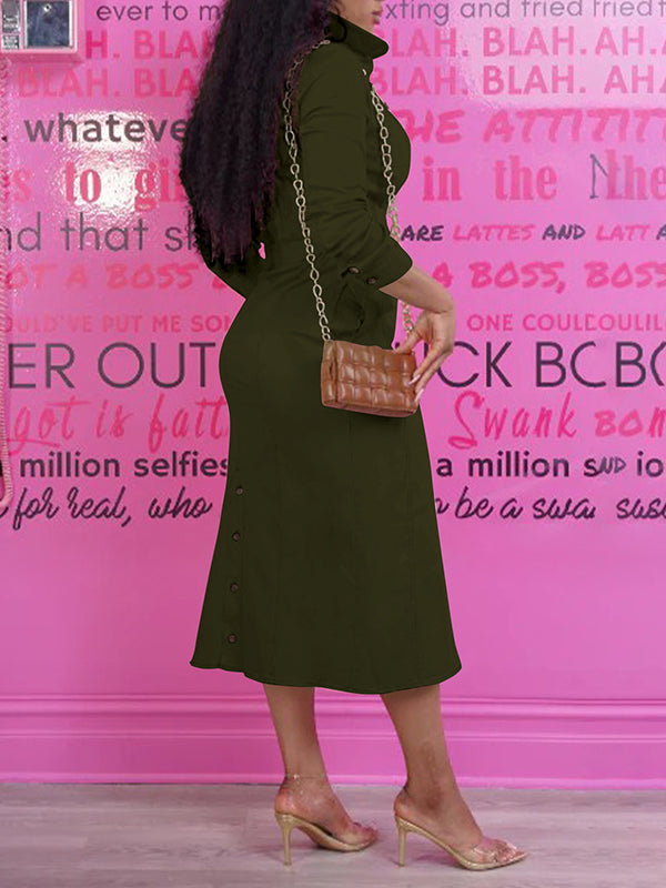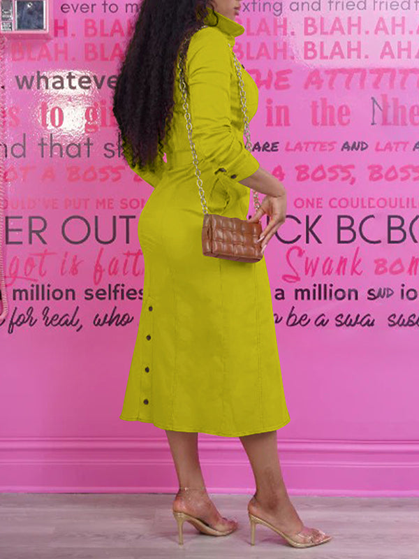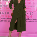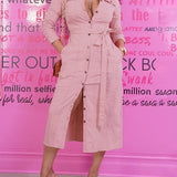 - Spread Collar, Long Sleeves, Button Front, Tied Belt