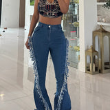 - Button/Zip Fly, Fringe Combo, Flared Leg