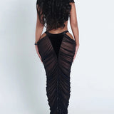Off-Shoulder Bandeau Top & Sheer-Combo Skirt Set