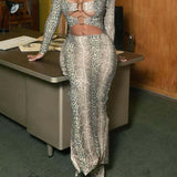 Snake-Print Cutout Maxi Dress