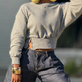 Solid Button-Waist Sweatshirt
