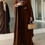 - Crew Neck, Slit Front, Elastic Waist, Wide Leg
